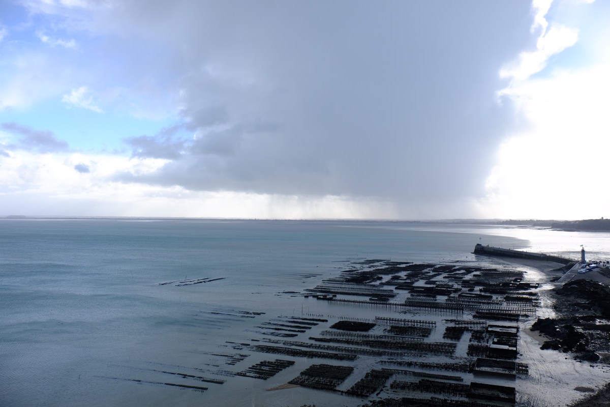 Bekannt für seine Austernzucht. Blick auf die Austernbänke von Cancale