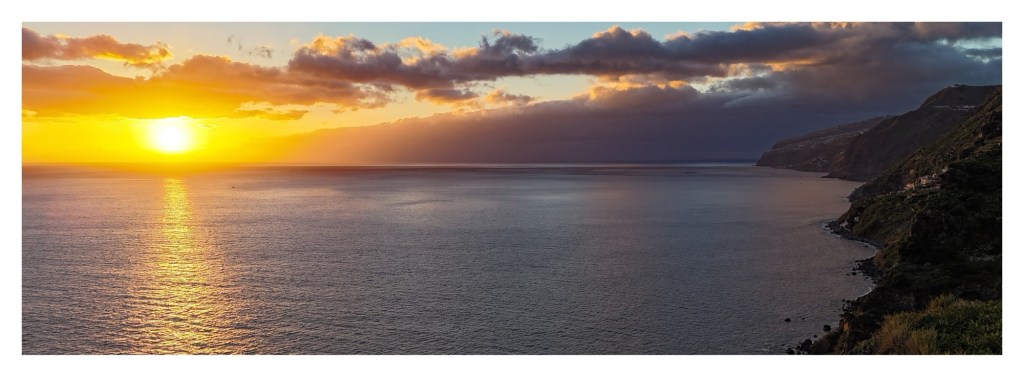 Sonnenuntergang bei Ponta do Sol, Madeira. Drohnenaufnahme